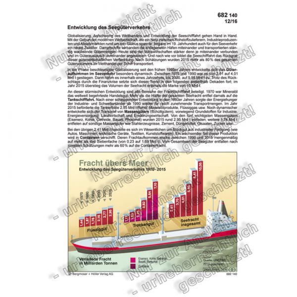 In der Phase beschleunigter Globalisierung seit den frühen 1990er Jahren entwickelte sich das Güteraufkommen im Seeverkehr besonders dynamisch. Zwischen 1970 und 1990 war es von 2,61 auf 4,01 Mrd t gestiegen. Dann nahm es innerhalb eines Jahrzehnts, bis 2000, auf 5,98 Mrd t zu. Trotz des Rückschlags durch die Finanzkrise setzte sich dieser Trend in den folgenden anderthalb Dekaden fort; im Jahr 2015 überstieg das Volumen der Seefracht erstmals die Marke von 10 Mrd t.