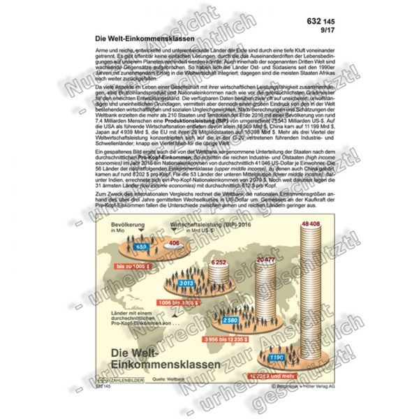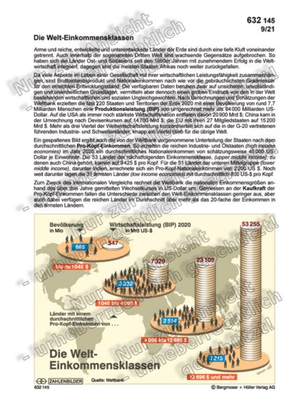 Was unterscheidet arme und reiche Länder? Die Weltbank teilt die Staaten der Welt in vier Einkommensklassen ein. Was kennzeichnet diese Ländergruppen? Wie groß ist ihr Anteil an der Weltwirtschaftsleistung und der Weltbevölkerung? Finden Sie die Antworten in diesem anschaulichen ZAHLENBILD!