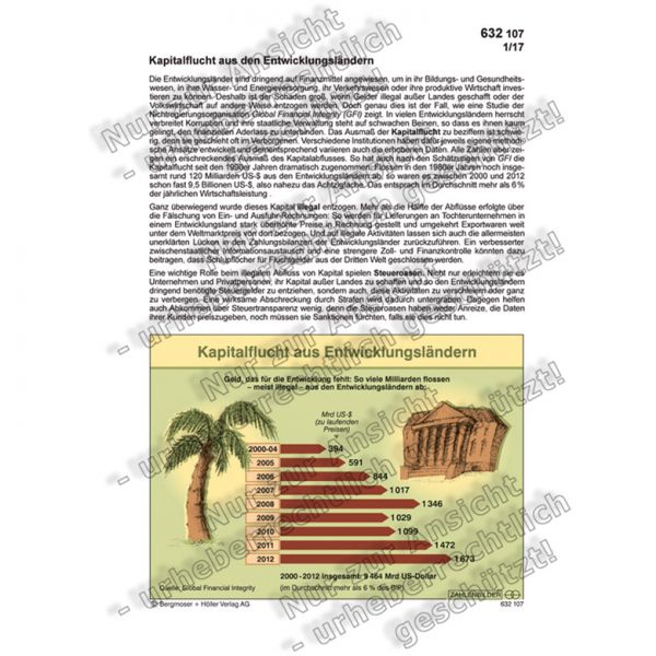 Die Entwicklungsländer sind dringend auf Finanzmittel angewiesen, um in ihr Bildungs- und Gesundheitswesen, in ihre Wasser- und Energieversorgung, ihr Verkehrswesen oder ihre produktive Wirtschaft investieren zu können. Deshalb ist der Schaden groß, wenn Gelder illegal außer Landes geschafft oder der Volkswirtschaft auf andere Weise entzogen werden. Doch genau dies ist der Fall, wie eine Studie der Nichtregierungsorganisation Global Financial Integrity (GFI) zeigt. In vielen Entwicklungsländern herrscht verbreitet Korruption und ihre staatliche Verwaltung steht auf schwachen Beinen, so dass es ihnen kaum gelingt, den finanziellen Aderlass zu unterbinden. Das Ausmaß der Kapitalflucht zu beziffern ist schwierig, denn sie geschieht oft im Verborgenen. Verschiedene Institutionen haben dafür jeweils eigene methodische Ansätze entwickelt und dementsprechend variieren auch die erhobenen Daten. Alle Zahlen aber zeigen ein erschreckendes Ausmaß des Kapitalabflusses. So hat auch nach den Schätzungen von GFI die Kapitalflucht seit den 1990er Jahren dramatisch zugenommen: Flossen in den 1980er Jahren noch insgesamt rund 120 Milliarden US-$ aus den Entwicklungsländern ab, so waren es zwischen 2000 und 2012 schon fast 9,5 Billionen US-$, also nahezu das Achtzigfache. Das entsprach im Durchschnitt mehr als 6 % der jährlichen Wirtschaftsleistung .
